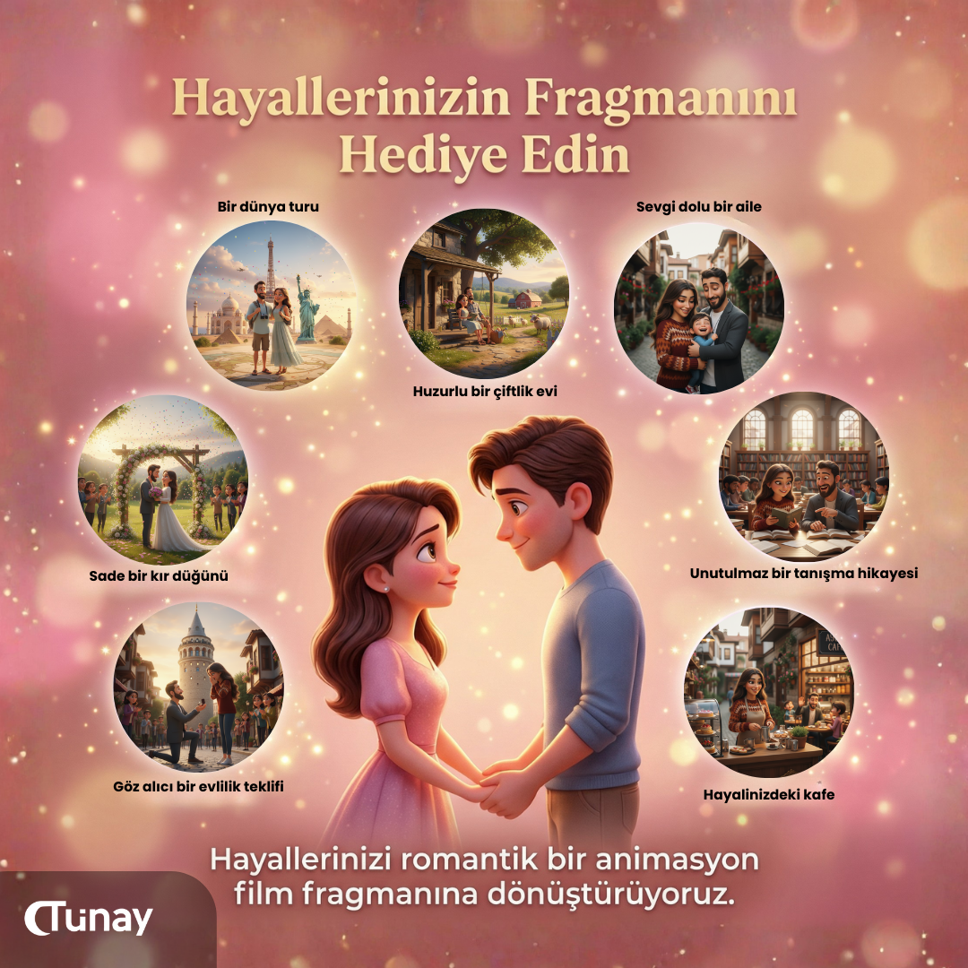 Hepsini tek bir romantik, özel ve tamamen size ait animasyon filminde topluyoruz. Sevdiğiniz kişiye “bizim geleceğimiz böyle olacak” demenin en yaratıcı ve etkileyici hali.
