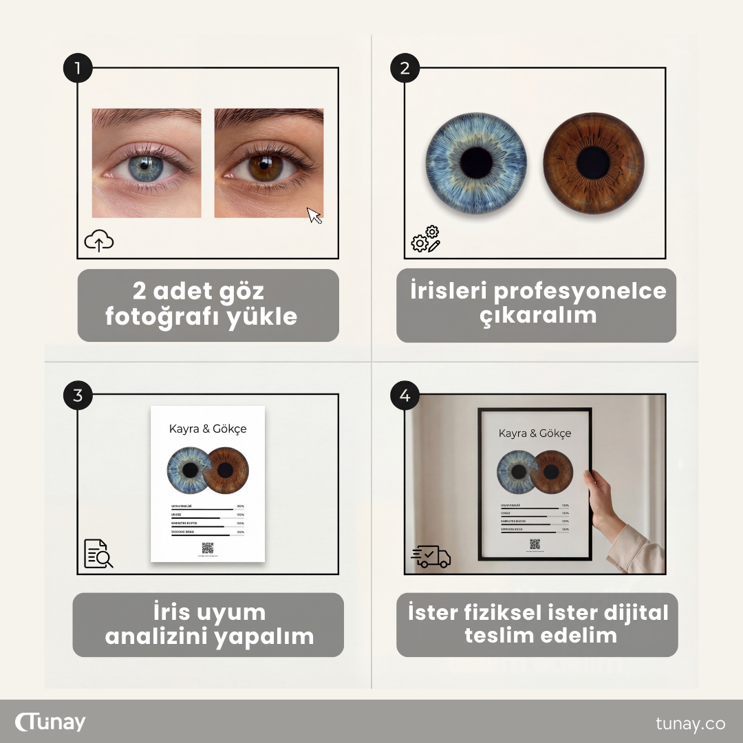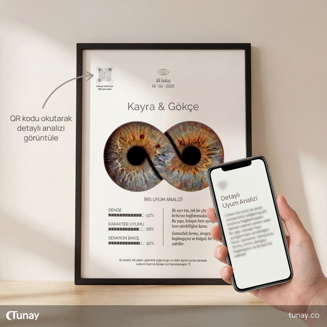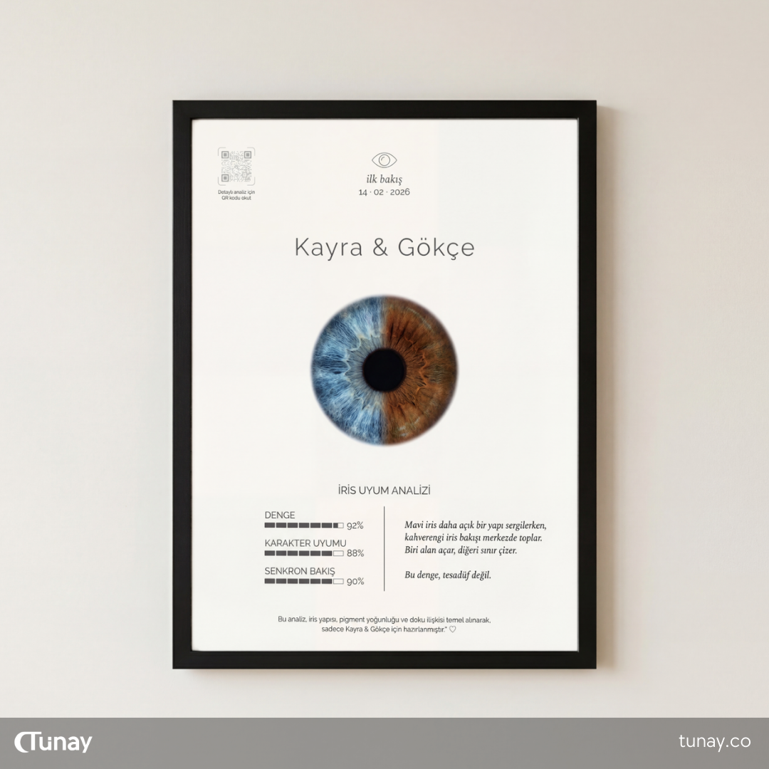 Biz de, bu bakışları temel alarak, göz fotoğraflarından irisleri titizlikle çıkarıyor ve kişiye özel bir sanat posterine dönüştürüyoruz.
